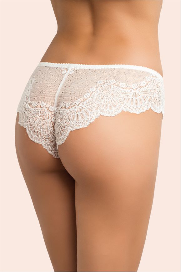 Комфортні трусики - бразиліани мають середню посадку. Виконані з оригінального італійського мережива і жаккардового полотна. Ластовиця з 100% бавовни.